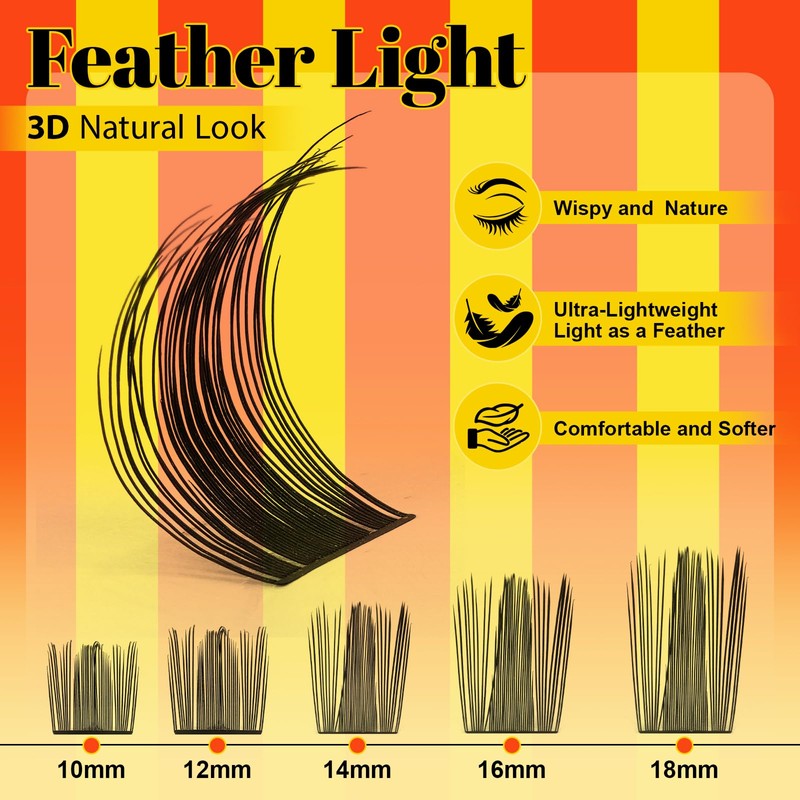 • Premium Quality Materials: Crafted from high-grade fibers, these lash clusters offer a distinctive look and feel that sets them apart from traditional eyelash clusters. Designed to blend seamlessly with your natural lashes and conform effortlessly to your eye contour, our cluster lashes create a lightweight, natural appearance—no weight, just beauty