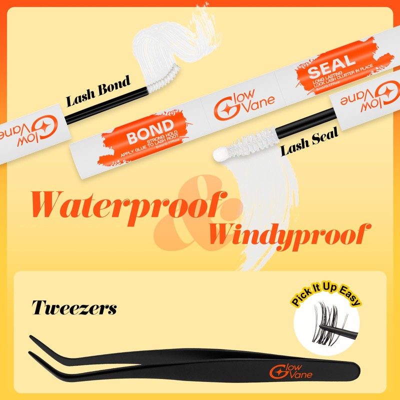 GlowVane DIY Eyelashes Kit includes 144 Pcs D curl 10-18mm Mixed Invisible Individual Lashes, 1 Lash Bond and Seal, and Lash 1 Applicator. Soft to the touch and comfortable to wear. You can create your unique beauty with this eyelash cluster kit.