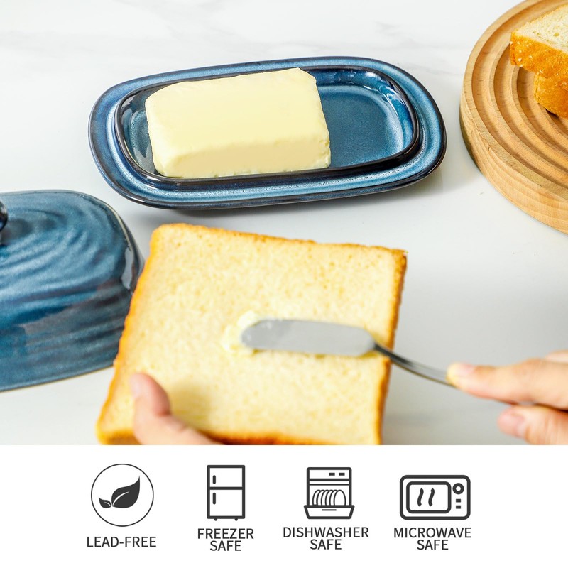 - Premium Ceramics: The butter dish with lid for countertop is made of high-quality ceramic, lead-free, ensuring the product's durability and safety. The smooth glazed surface of the butter dish is not only easy to clean but also protects the tabletop from scratches.
