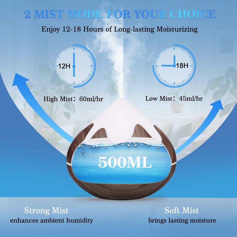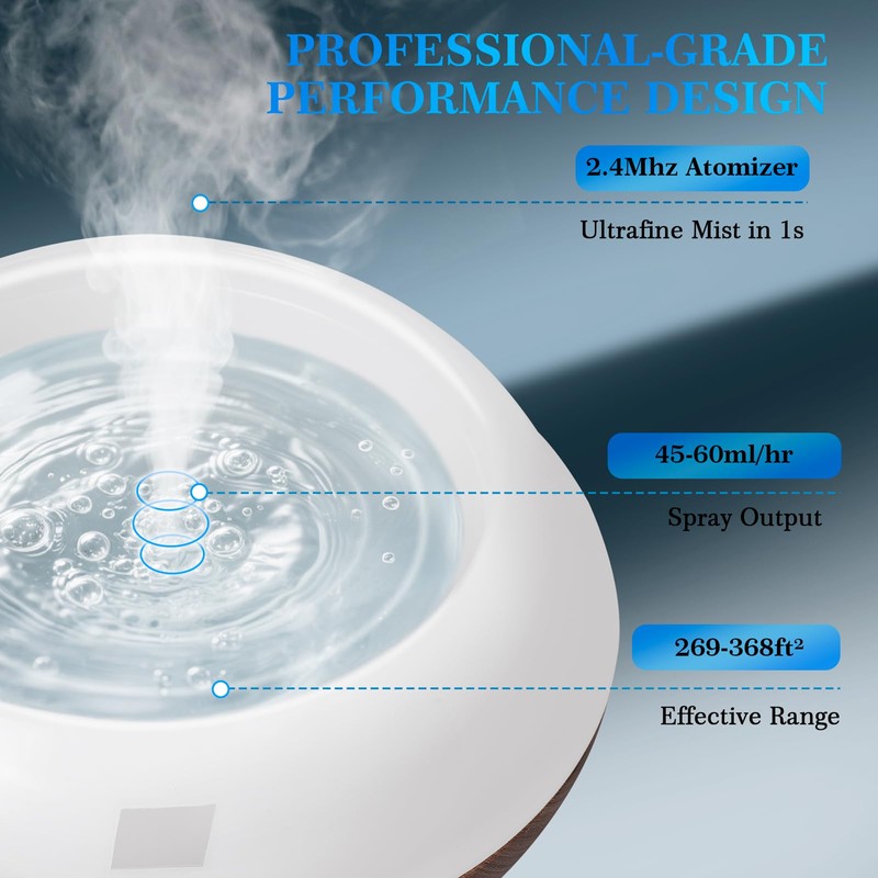 • PREMIUM SAFE & HOME-FRIENDLY DESIGN: Made from BPA-free PP material that's safe for families and pets. The auto-shutoff keeps safety when water runs low. Choose between 45ml/hr (delicate ambiance) or 60ml/hr (intensive therapy) spray modes. Perfect for spaces from 269-368ft2- whether it's your bedroom, yoga studio, or open-concept living area.
