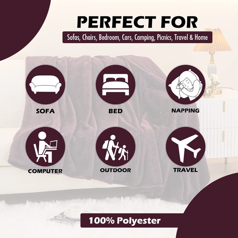 - [ VERSATILE BLANKET ] This Popcorn style throw used as sofa throw, drape over your couch, layer under a quilt or just as a bedspread at the foot of your bed. It is also suitable for outdoor use like going picnic, travelling, backpacking or just when you nap in your office or carry it in cars. This waffle throw blanket is not only perfect for all seasons, but it can be used in any room of your home and is also great for picnics, camping or just lounging on the beach.