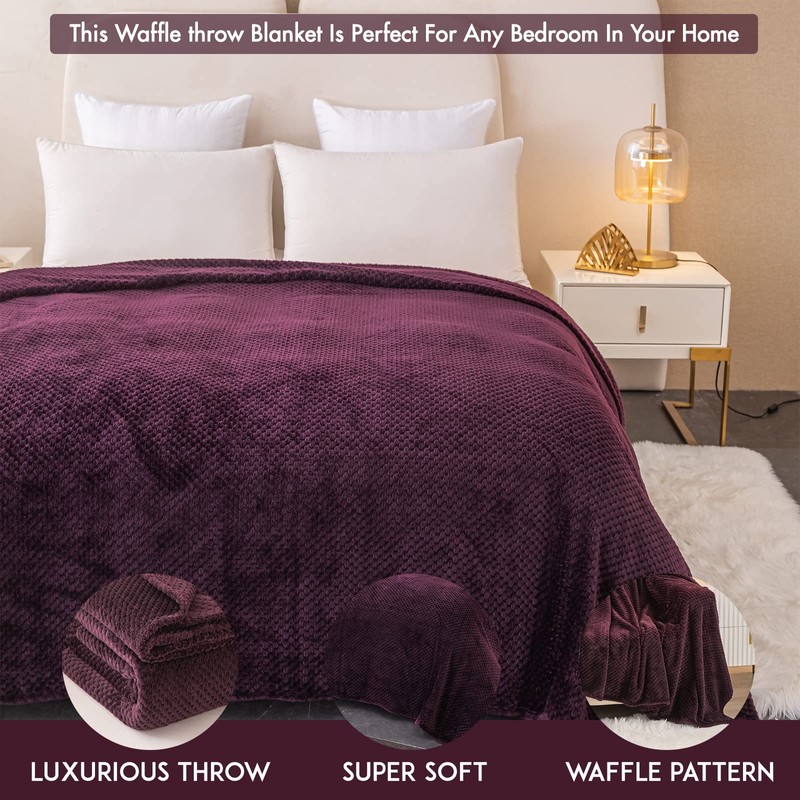 - [ BRING MODERN LOOK TO YOUR ROOM ] Our Large Throw has a beautiful textured waffle weave pattern that gives it a unique and modern look. The textured fabric gives a soft and velvety feel and this plush yet lightweight blanket will keep you warm and cozy, making it a versatile choice for all season use. Just add a fresh layer to your bed or sofa with our waffle weave blanket.