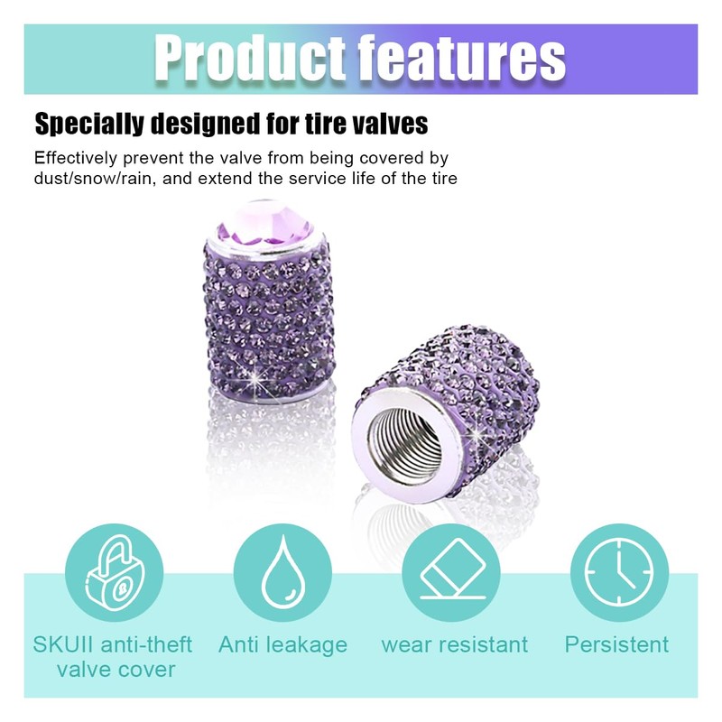 - 【Easy to Install】:Includes 4 bling car tire valve caps, easy to install, just easily tighten by hand to make sure the valve caps won't fall off or loosen. Cool and shiny car tire valve caps are also perfect presents for family and friends.