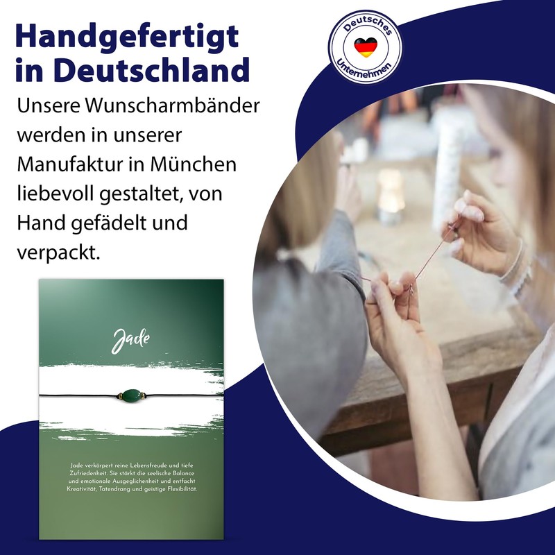 - Handmade in Germany – All bracelets are lovingly developed in the factory in the west of Munich and threaded and packed by hand