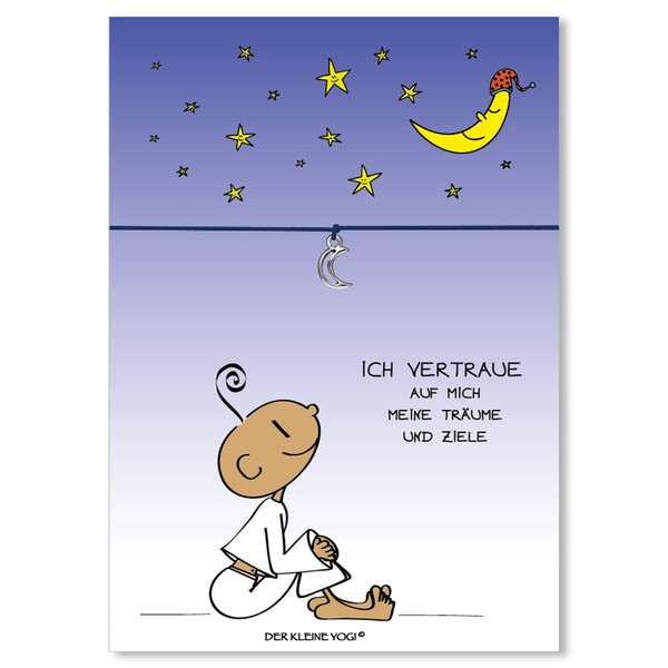 - Personal greeting card: the card (standard dimensions 14.7 x 10.4 cm) with the design of the "Der kleine YOGI" and motivational words can be written on the back with individual wishes
