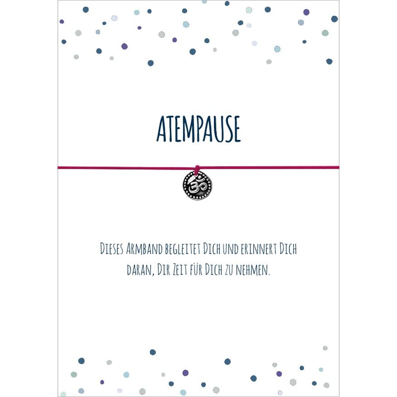 Glücksschmiedin - Motivational Bracelet Breathing Breath in Pink with Silver-Coloured OM Pendant and Saying Card, Handmade Locally, Metal