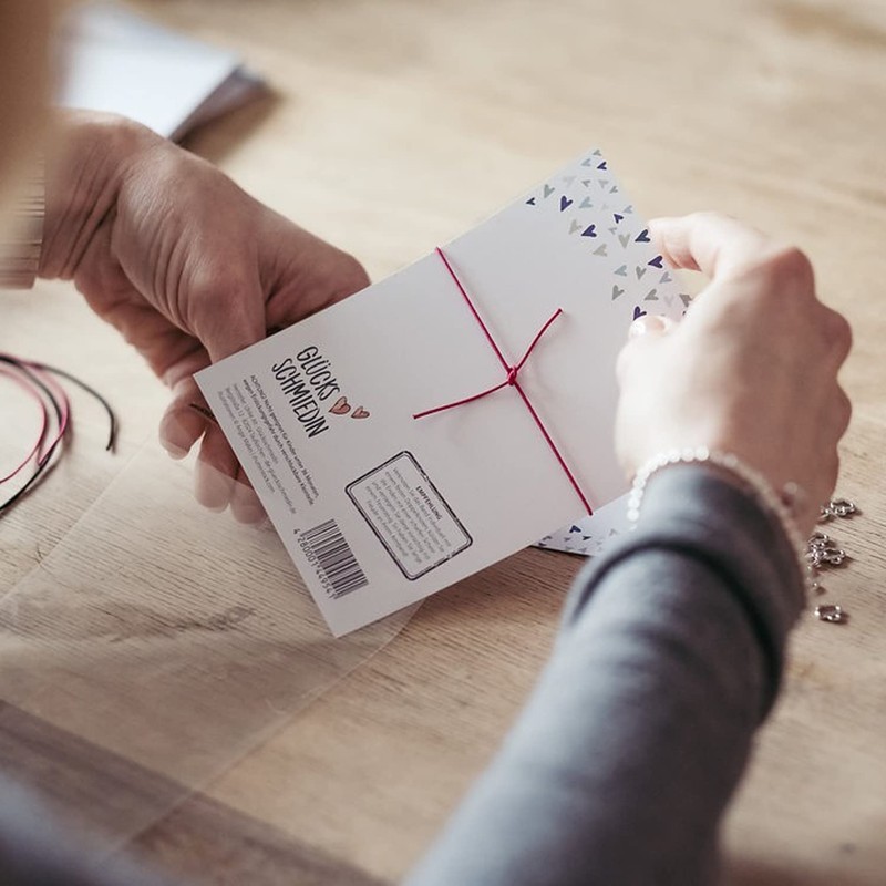 - Gift idea – the card and wish bracelet are packed in a cellophane bag and can therefore be used as a gift for a favourite person of motivation