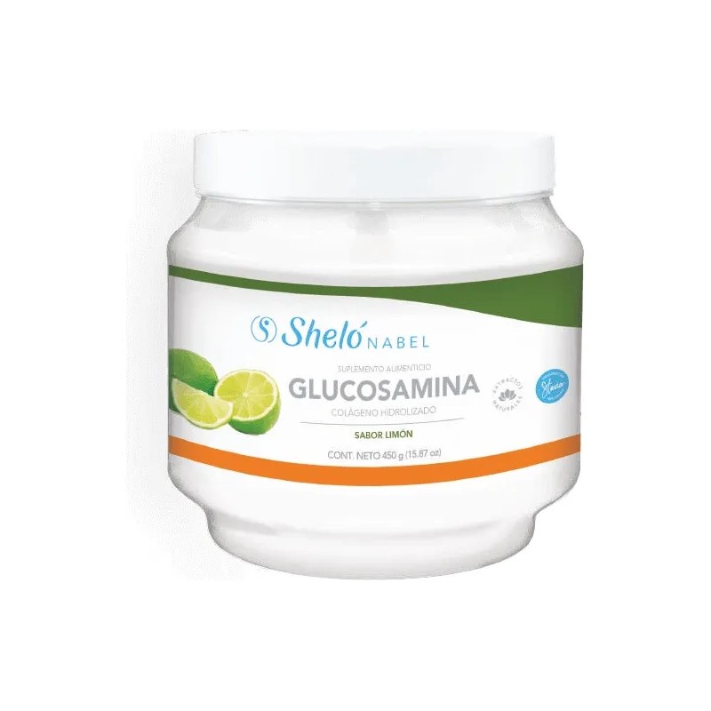- COLÁGENO HIDROLIZADO LIMÓN DE SHELÒ NABEL CON GLUCOSAMINA. Beneficios de la glucosamina: Estimula las células para mejorar la capacidad del cuerpo, ayudando a regenerar el metabolismo del cartílago y otros tejidos conectivos, disminuyendo la molestia e inflamación. Beneficios: