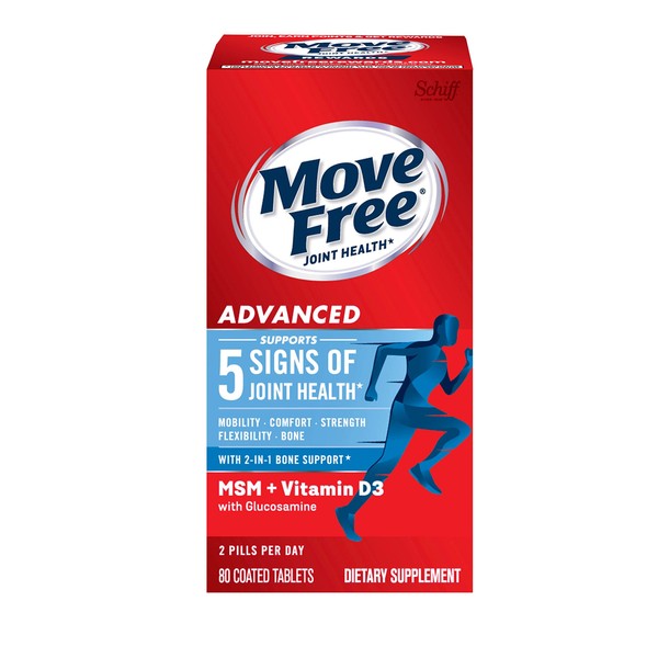Glucosamine Chondroitin MSM & Vitamin D3 Joint Health Supplement, Move Free Advanced Joint Support Tablets For Men & Women (80cnt box), With Vitamin D3 To Support Bone & Immune Health