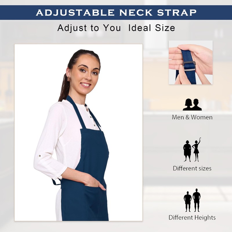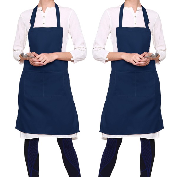 GLUN® Kitchen Cooking Aprons, Solid Blue Color Adjustable Bib, Chef Apron with 2 Pockets, Long Ties, Long Blue Neck Strap for Men & Women Unisex Aprons Pack of 2