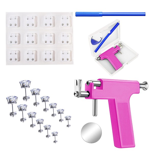 - ❀【Comprehensive Piercing Gun Kit】This ear piercing kit includes a durable pink piercing gun, a precise marking pen, 12pcs of zirconia stud earrings (ranging from 3-8mm), as well as 24pcs of stainless steel round ball studs. Whether you're a beginner or experienced, our kit provides everything you need to achieve professional-quality piercings from the comfort of your home.