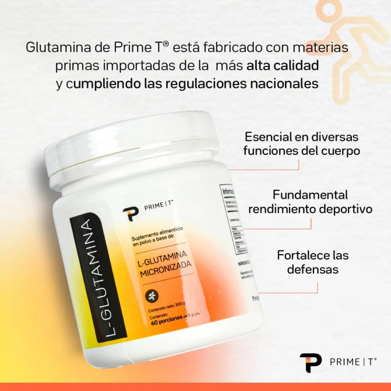Glutamina En Polvo Micronizada Primetech 300 Gr, 60 Porciones De 5 Gramos un aminoácido Alta Pureza Sin Sabor Sin Aditivos ayuda la salud intestinal, crecimiento, recuperación y refuerza el organismo