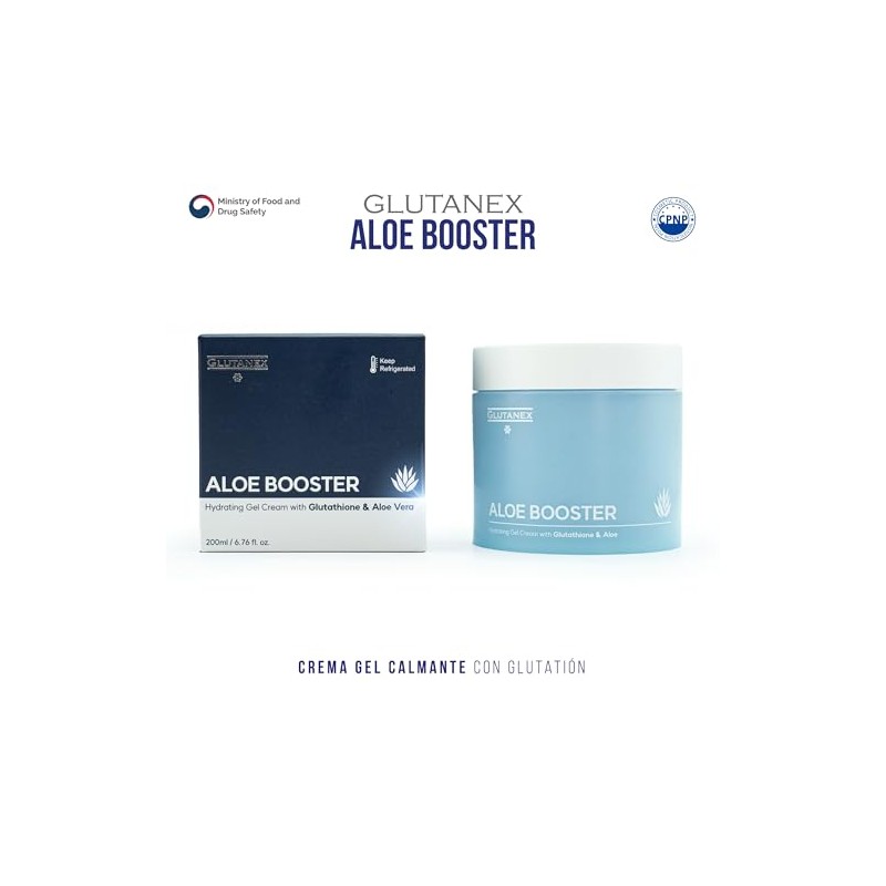 GLUTANEX™ ALOE BOOSTER Crema Gel Calmante, Hidratante, Reparadora y Antioxidante con Glutatión, PDRN de Salmón, Pantenol, Extracto de Aloe Vera y Triple Ácido Hialurónico (200ml.) De Corea del Sur.