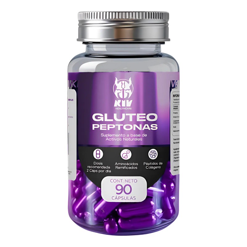 - GLÚTEO PEPTONAS DE COLÁGENO KIV HEALTHCARE 90 CÁPSULAS ¡Descubre la manera natural de realzar tu figura con KIV Healthcare! Nuestro exclusivo suplemento está diseñado para aumentar el tamaño, firmeza y definición de los glúteos de forma 100% natural, segura y efectiva. Cada cápsula combina una poderosa sinergia de ingredientes premium: Péptidos Bioactivos de Colágeno Hidrolizado fortalecen tejidos y mejoran la elasticidad de la piel. Aminoácidos de Cadena Ramificada (BCAA) estimulan la síntesis de proteínas y el desarrollo muscular. N