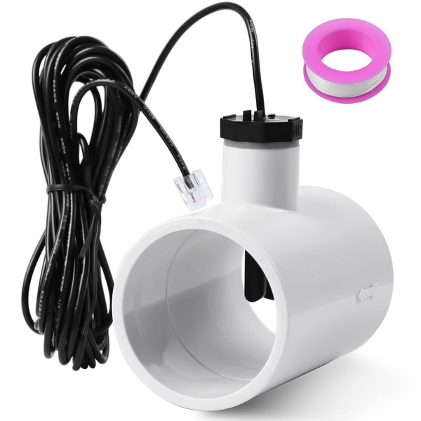 - 【Easy Installation】: The Flow Switch uses a standard 1/2'' thread, come with 15FT Cable and waterproof tape. Wrapping with waterproof tape and screw into the tee pipe, plug in the phone jack cable at the controller, only take a few minutes make "no flow" warning light to go off. Arrow on switch indicates the direction of water flow, please ensuring proper installation direction.