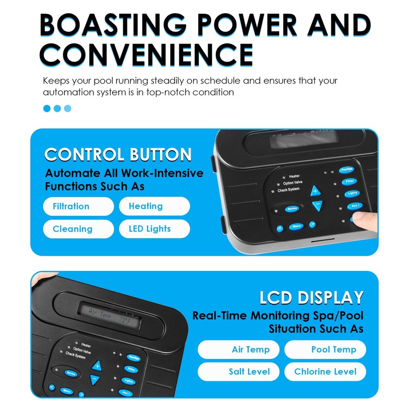 - 【AUTOMATION SETTINGS】: Automate all work-intensive functions such as filtration, heating, and others by setting the local display replacement. This GLX-LOCAL-P-4 controller keeps your pool running steadily on schedule and ensures that your automation system is in top-notch condition, saving time on pool maintenance.