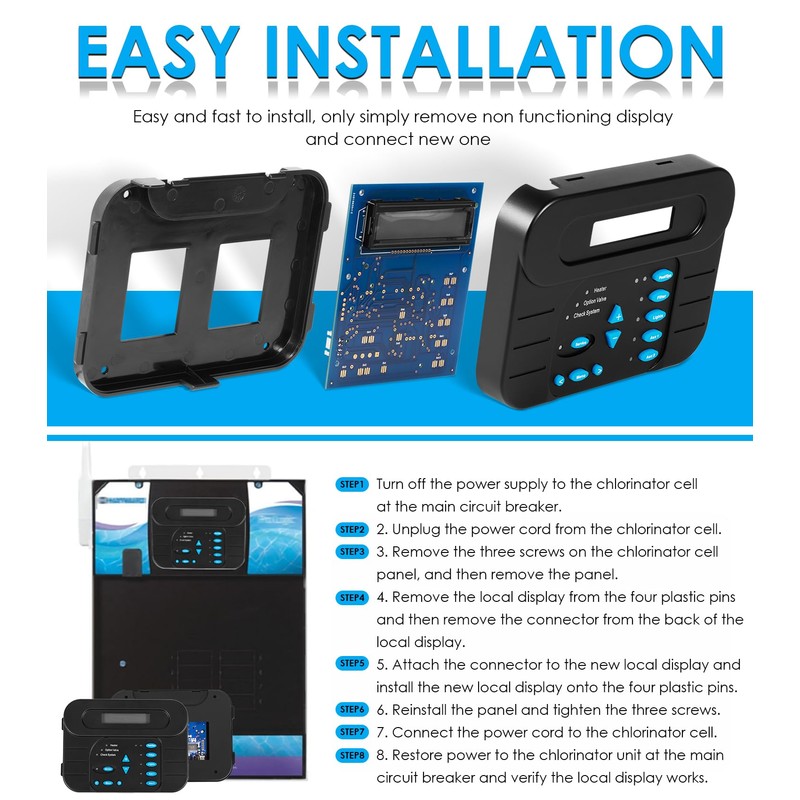 - 【REAL-TIME MONITORING】: This GLX-PL-LOC-P-4 display allows you to easily monitor your pool's automation and chlorination functions. The fully functioning digital display lets you know pool temp, air temp, chlorine level, salt level, and more at a glance, helping you to make timely adjustments according to your needs.