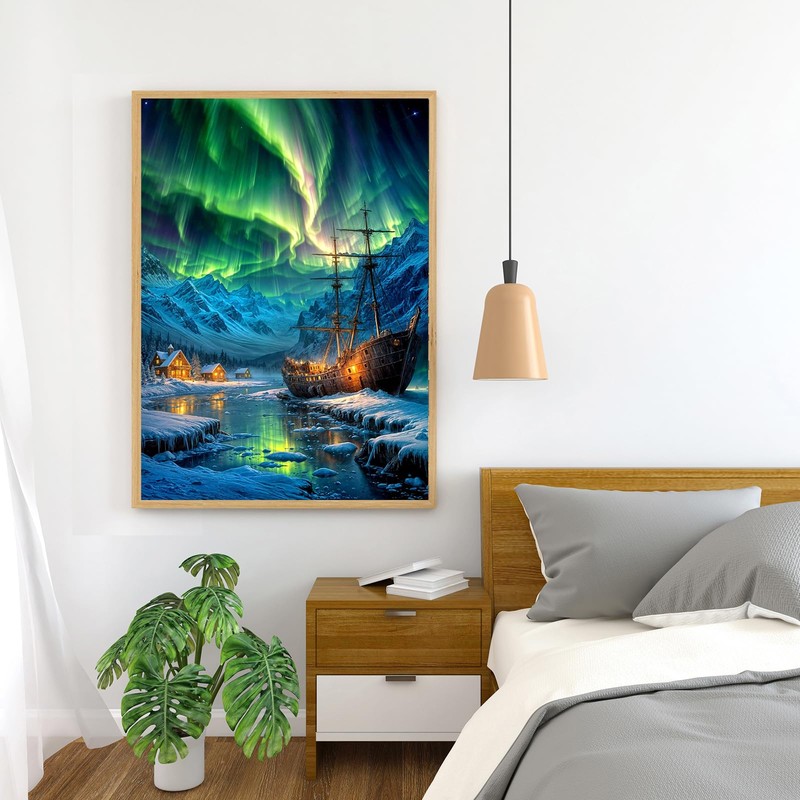 GLXPOG Aurora Borealis 5D Diamond Painting Picture Set, Snowy Mountains Diamond Art Painting Kit for Adults, DIY Rhinestone Embroidery Painting Wall Decor 30 x 40 cm