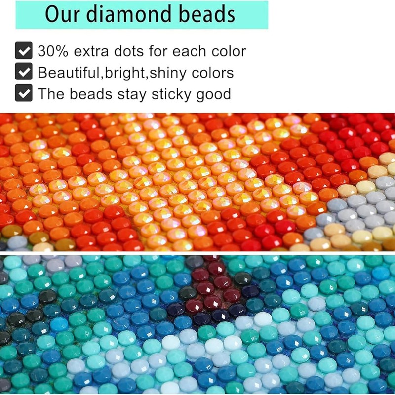 - ADDITIONAL 20% DIAMONDS The amount of diamonds in each diamond painting kit is increased by an additional 20% to ensure you have enough diamonds to complete each color range.