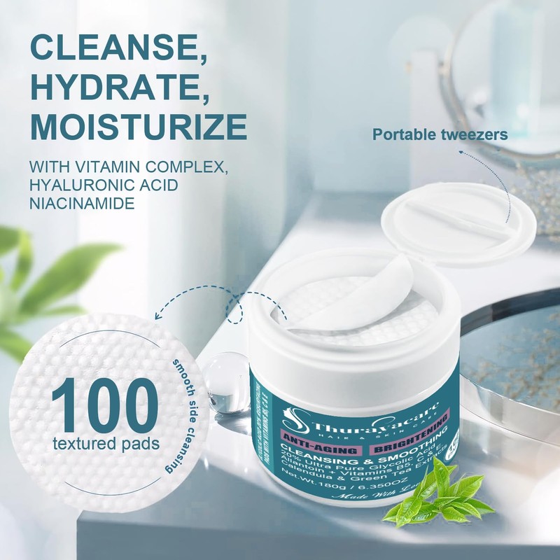 - 100 Pre-Soaked Textured Pads: Dual-sided and pre-saturated for convenience, these exfoliating peel pads provide mess-free, spa-quality resurfacing at home. Suitable for all skin types—no rinse needed.