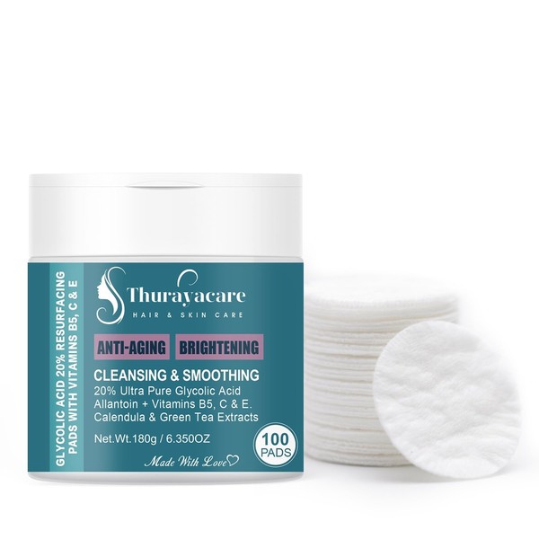 Glycolic Acid 20% Exfoliating Pads – Anti-Aging Face Pads with Vitamins B5, C, E, Allantoin & Niacinamide – Resurfacing, Brightening & Pore Cleansing – 100 Count