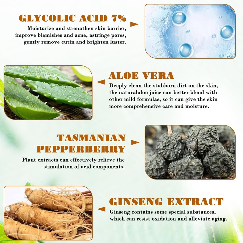 - 4. 【Multifunktionale Formel】: Dieser Peeling-, feuchtigkeitsspendende und porenverfeinernde Toner verbessert den Hautton und revitalisiert die Hautstruktur und bietet gleichzeitig eine sanfte Reinigung, um eine glattere, weichere Haut zu enthüllen.