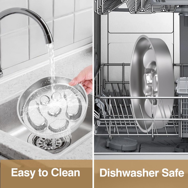 - 【Healthy and Safe】The slow eating dog bowl is made of 304 stainless steel,which can be used in a healthy and safe way. It can be used to hold dry dog food,freeze-dried dog food,Wet dog food,Canned, Milk etc.
