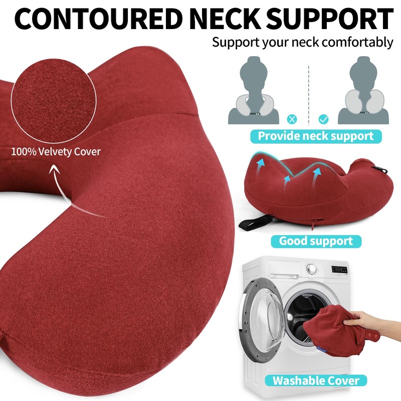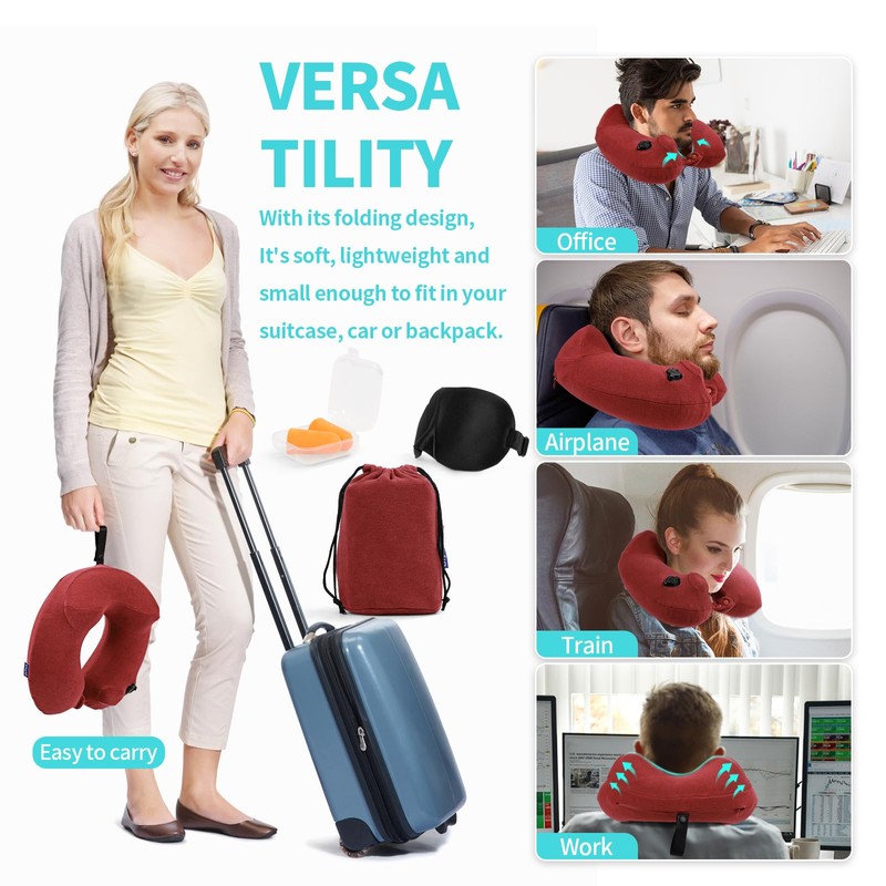 - 【Premium Material & Design】This classic U-shaped inflatable neck pillow features a durable PVC core covered with soft, velvety fabric for maximum comfort. Designed with a built-in pump, it provides easy, hands-free inflation. The raised neck supports at the back provide side support for the head.