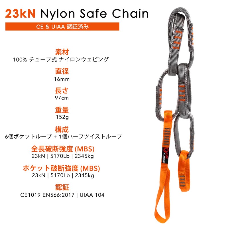 - CE and UIAA Certified: Safe chains that pass CE and UIAA standards can be used for climbing and mountain climbing. The orange and gray combination contrasts easily identify click-in points