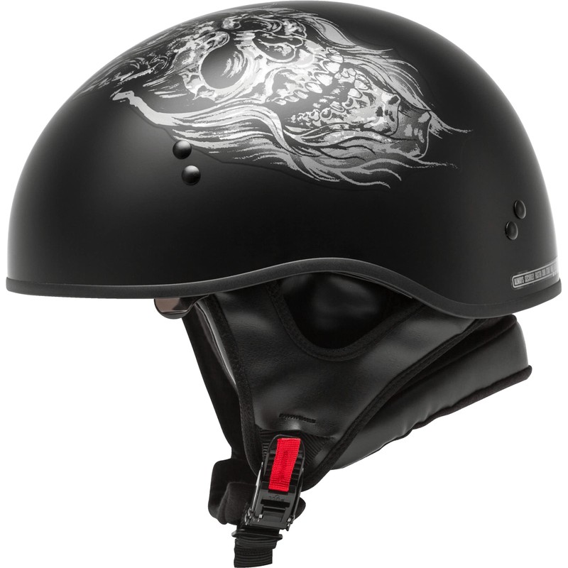 - LOW PROFILE: This low-profile motorcycle helmet provides a modern and sleek look while delivering the protection, comfort and features of a larger motorcycle helmet. The HH-65 is an essential addition to any enthusiast's riding gear. This design features an old-school, tattoo-style skull for extra appeal.