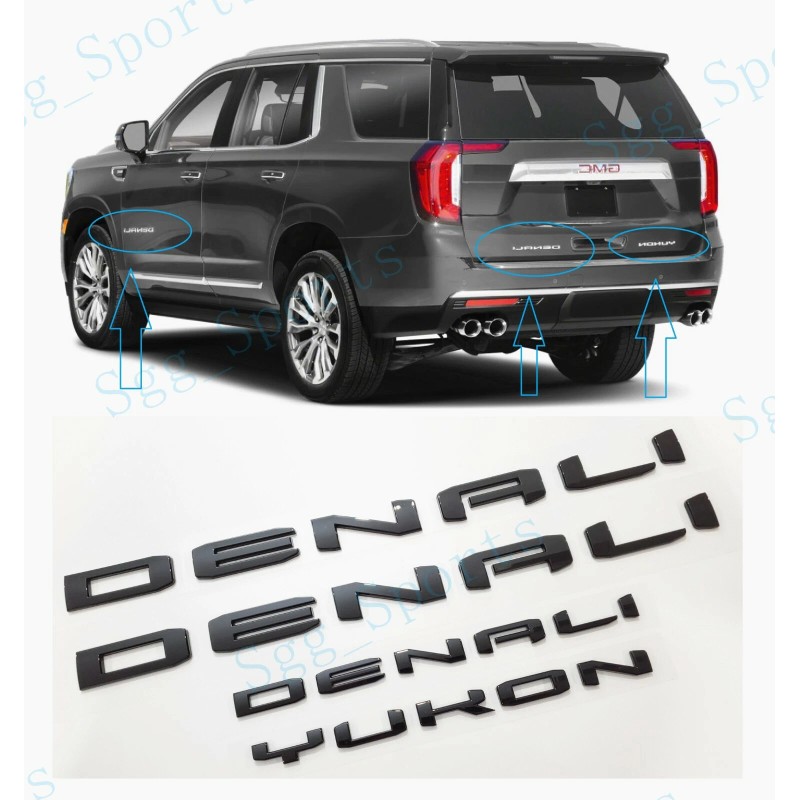 GMC 4pcs GMC 2021-2023 Yukon Yukon XL Gloss Black Door Rear DENALI YUKON Emblems