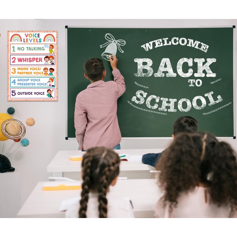 - 【Clear & Easy-to-Understand Design】: Featuring 5 distinct voice levels like "Table Talk" and "Whisper," this educational poster simplifies classroom rules. The vibrant, laminated finish ensures durability, while the intuitive graphics make it easy for young learners to follow noise expectations. Ideal for back-to-school setups.