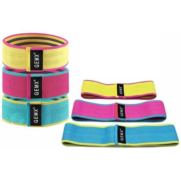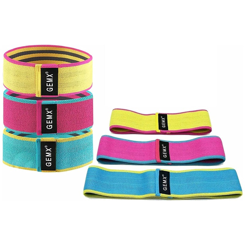 GMEX Fabric Resistance Bands | Skin-Friendly Resistance Bands | Exercise Loop Bands with 3 Resistance Levels for Legs, Glutes and Arms | Fitness Bands for Home, Gym and Yoga | Training band [Set of 3]