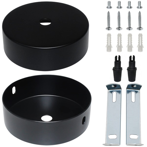 GMMG Ceiling Canopy Black Pack of 2 80 x 25 mm Canopy Lamp Distribution Canopy Surface-Mounted Box Black Lamp Canopy with Strain Relief Clamp Nipple Suitable for Lamps