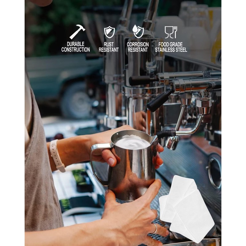 - food-grade304stainlesss teel Premium Materials milk frother marked with scales on the inside and outside for easy and accurate measurements ergonomic handle for it is dishwasher safe