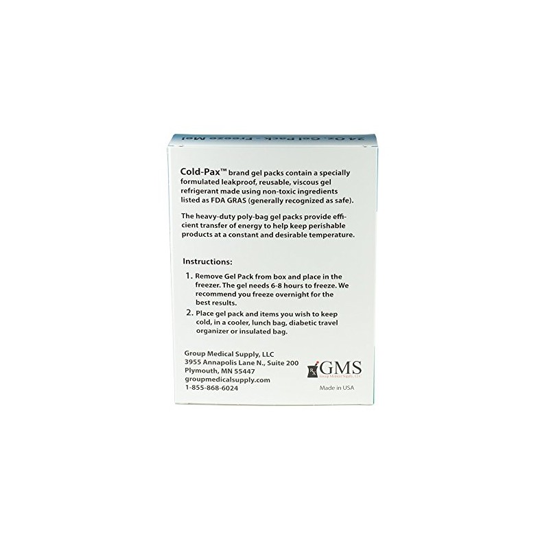 GMS Cold-Pax - 24 oz Reusable Gel Ice Pack Freeze Refrigerant for Insulpak and ChillMED Premier - 8" x 5 1/2" x 1"