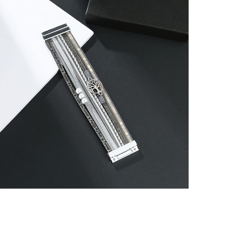 GMXLin Family Tree of Life Leather Wrap Bracelet Women Girl Grey Multi-Layer Layered Bracelets Cuff Boho Wristband Bracelets for Sister Daughter Best Friends