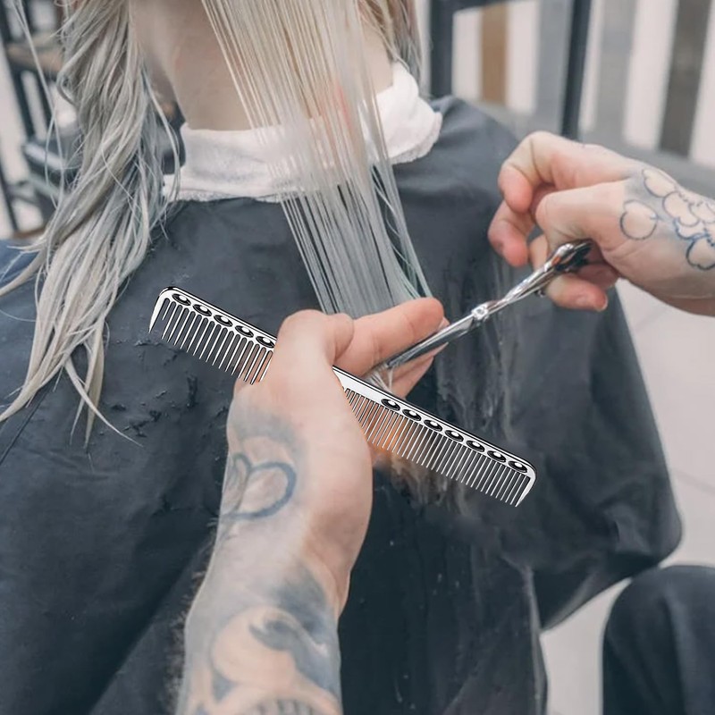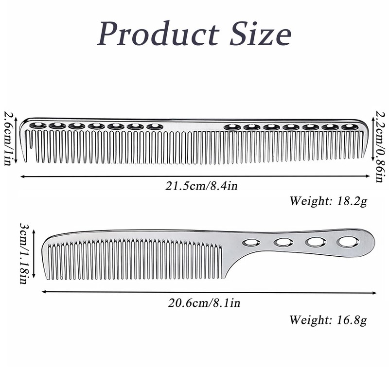 GMYIAK Hairdressing Comb Set, 2 pcs Metal Salon Combs, Heat Resistant Anti-static Haircutting Comb, Professional Styling Comb Set, For Haircutting and Styling (Silver)