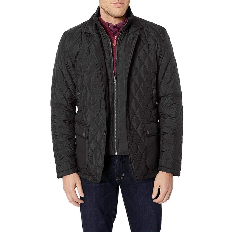 GN Luciano Men's Quilted Puffer Jacket with Double Knit Collar (XX-Large, Black)