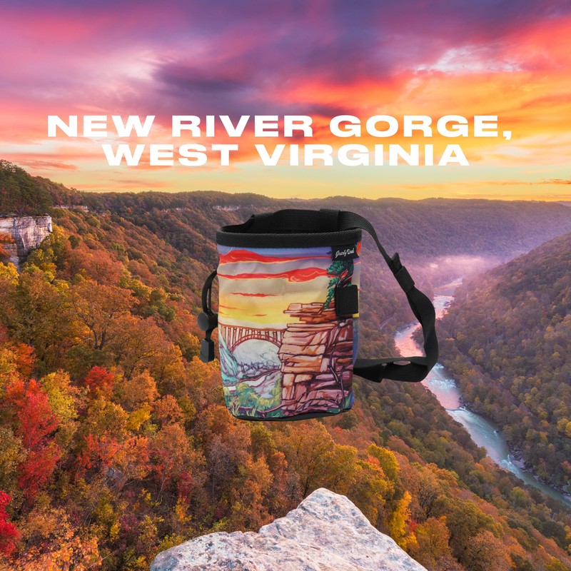 Gnarly Dood | Chalk Bag for Outdoor & Gym Rock Climbing & Bouldering | with Adjustable Waist Belt, Durable Drawstring Closure, & Zippered Pocket | New River Gorge