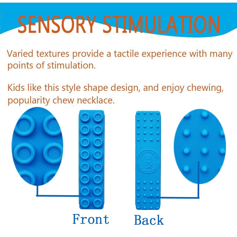 - 100% Food Grade Silicone - Our autism chew necklace are made of food grade silicone, free of BPA, latex, phthalates, cadmium, and lead. The chew necklace is neither too hard nor too soft, just right for teeth to chew. In addition, our sensory chew toys have a concave and convex dot design on the surface, which effectively stimulates children's oral cavity, greatly relieves children's anxiety and loneliness.