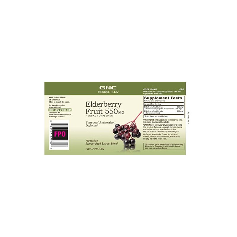 - GNC Herbal Plus,Elderberry Fruit 550mg, Capsules