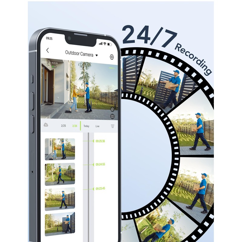 - Free 24/7 Recording to Local MicroSD Card: Insert a MicroSD card for 24/7 local recording and playback in the Osaio App (supports up to 128GB, MicroSD card not included)