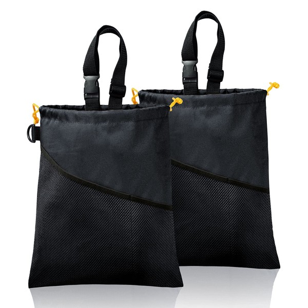 - 2PCS Set:2 Car Trash Bags in one pack, and they can fit behind the two car seats. SIZE:13.25×11.75 inches. The buckle can fix the trash bin at any position of the car