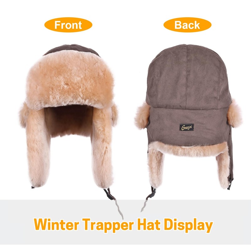 GNEGNI LIFE Winter Trooper Trapper Hat, Faux Fur Warm Hats Windproof Bomber Hats Aviator Caps with Ear Flap for Skating, Skiing, Hunting