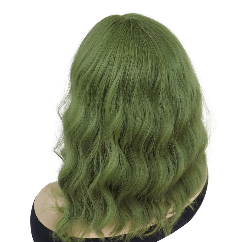 GNIMEGIL 15 inch Matcha Green Wig with Bangs Women Girls Short Curly Wavy Bob Wig Shoulder Synthetic Drag Queen Party Wigs Weaving Cap Included