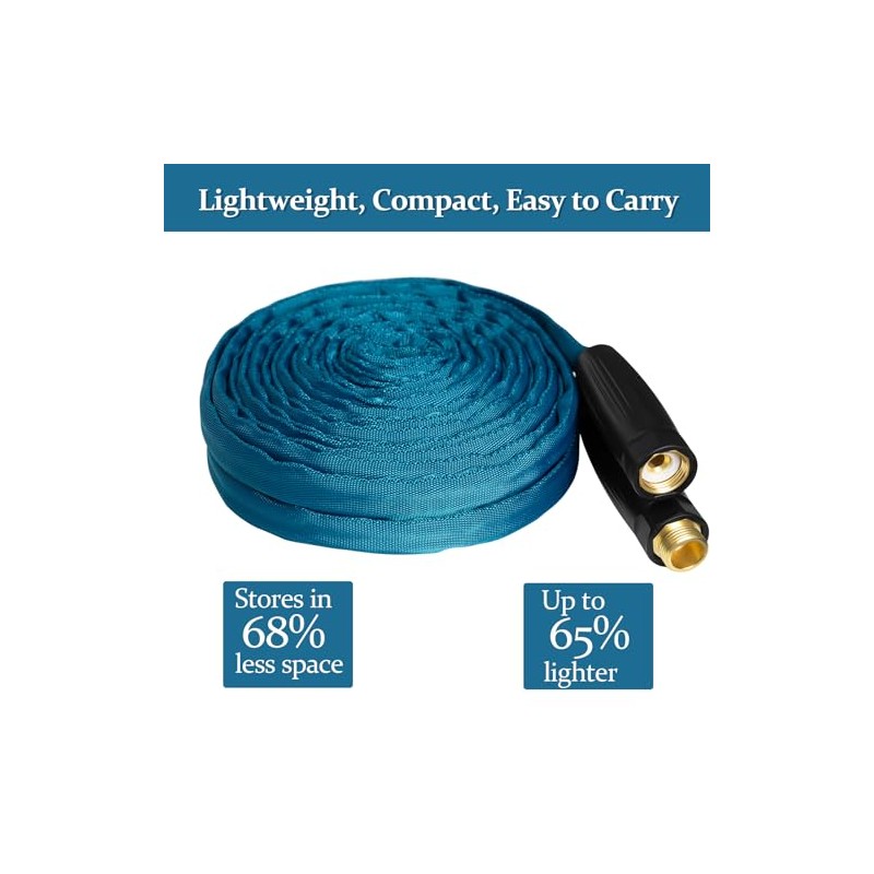 - [ Lightweight, Compact, Easy to Carry ] Up to 65% lighter and 68% less storage space than conventional garden hoses. This water Hose is extra flexible, lightweight and compact for simple storage, perfect for garden, RV and marine use. Whether moving through different parts of the garden or switching between locations, handling them is effortless.