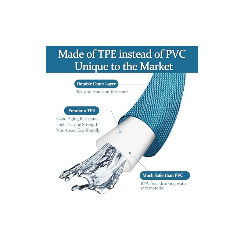 - [ All-Weather Flexibility ] Maintains flexibility down to -22 degrees Fahrenheit and can be used in temperatures up to 150 degrees Fahrenheit. Ordinary PVC hose has poor-resistance to low and high temperatures, and the hose loses performance under temperature changes, which can damage it. TPE's superior freeze-resistance provides durability to the hose.