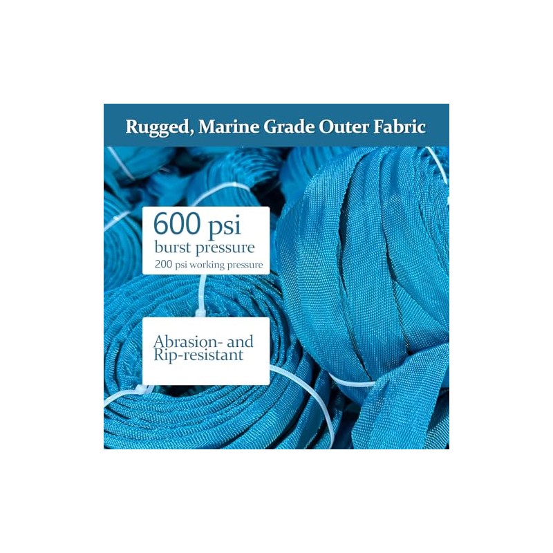 - [ Durable Garden Hose ] Rugged, marine-grade fiber jacket construction surrounding a flexible TPE inner core. The rip- and abrasion-resistant outer fabric helps maintain the hose's shape and protect it from breaks, cracks and leaks. This garden hose can withstand up to 600PSI burst pressure and 200PSI working pressure. Top-level strengthen hose than similar.