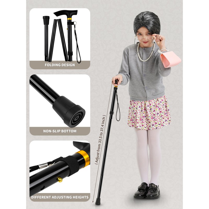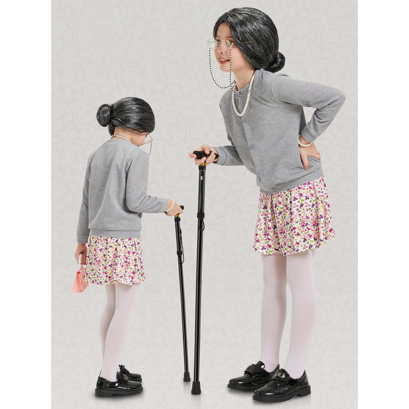 - Retractable Metal Cane: This 100 days of school costume set includes a extendable metal cane, can help you dress up like an old lady for 100 days of school in Kindergarten